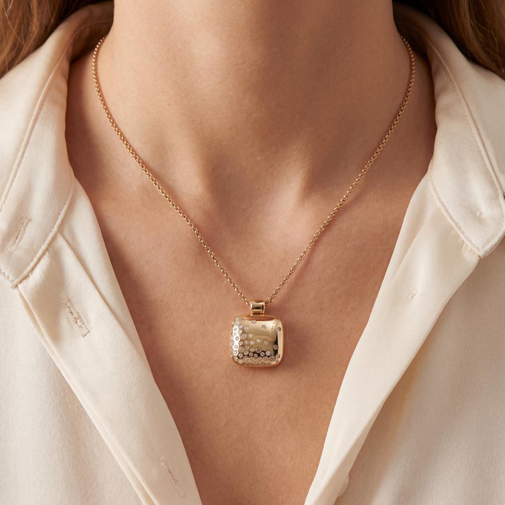 Die Schmuckstücke der Kollektion Palazzo zeichnen sich durch ihre klare Linienführung und weiche Formensprache aus. Zahlreiche Edelsteine im runden Brillantschliff verhelfen aufgrund ihrer außergewöhnlichen Brillanz zu einer zauberhaften Ausstrahlung. Der Clou: Die Durchmesser der verwendeten Edelsteine variieren. Vielleicht besitzen Sie Schmuckstücke, die Sie nicht mehr tragen? Gerne verarbeiten unsere Goldschmiede und Juwelenfasser Ihre Edelsteine in diesem Schmuckstück neu!