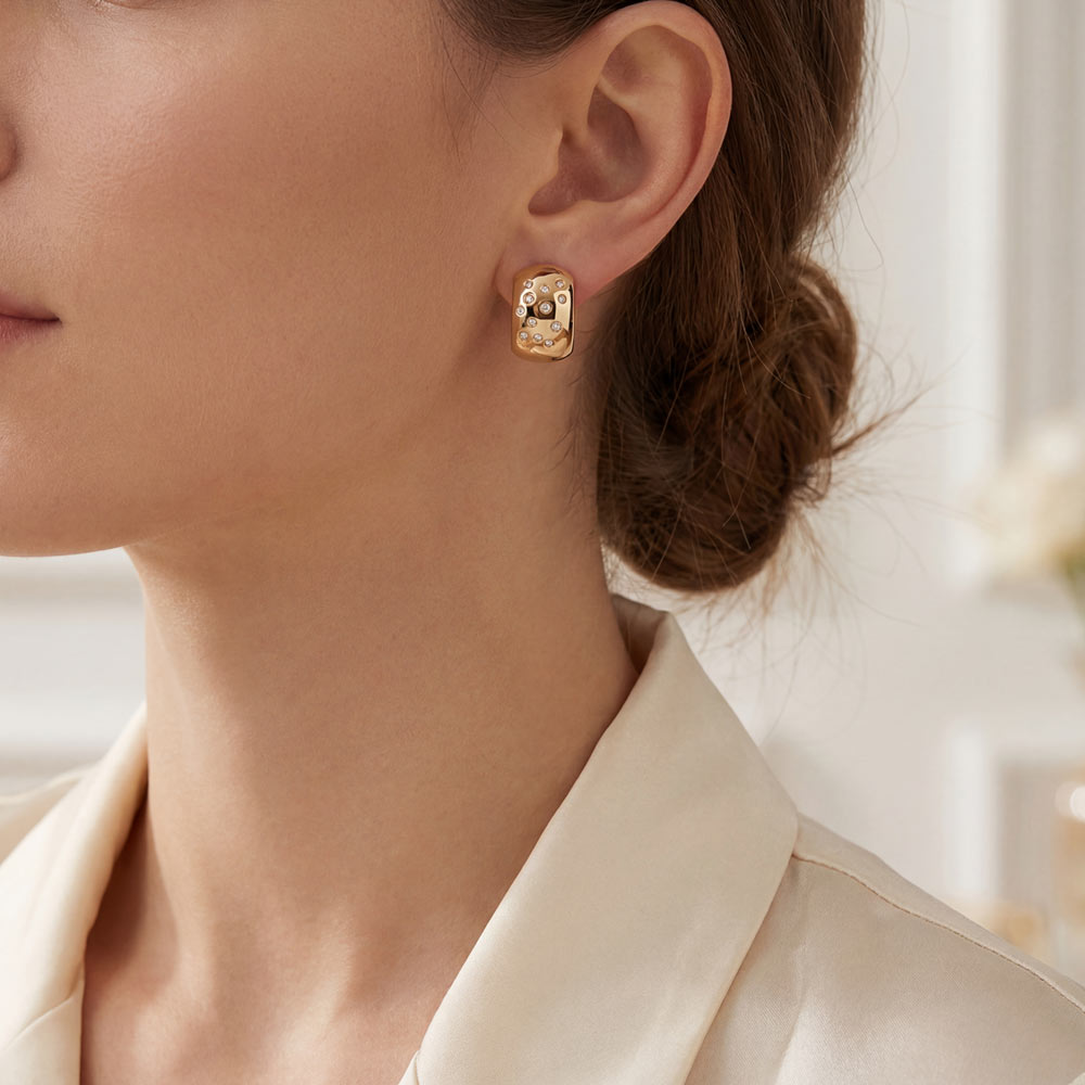 Bezaubernder Ohrschmuck mit fein weißen Diamanten im runden Brillantschliff. Unterschiedlich in der Größe sind die edlen Brillanten wie zufällig eingestreut in warmem Roségold 750/- gefasst.