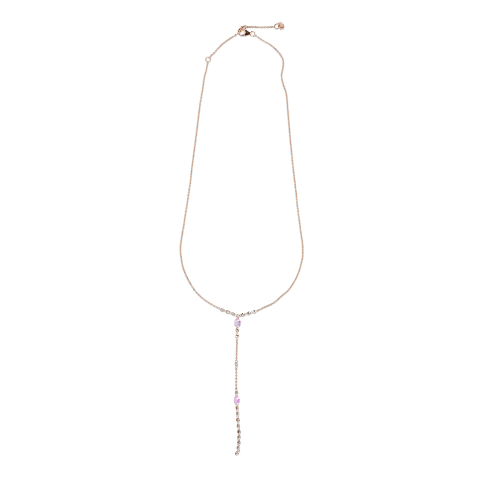 Feminines, lässiges Collier mit einem Mix aus Farbedelsteinen und Diamanten, das in verschiedenen Längen getragen werden kann. Aus warmem Roségold gefertigt.