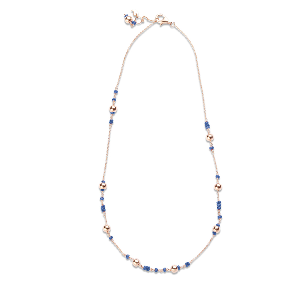 Femininer, lässiger Halsschmuck mit mehreren blauen Saphiren aus 18-karätigem Roségold gefertigt mit einer Länge von 100 cm . Die Kette kann wahlweise einreihig lang oder doppelreihig kurz getragen werden. Ein toller Begleiter für jeden Tag!