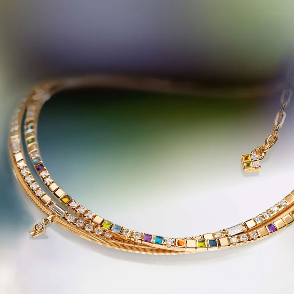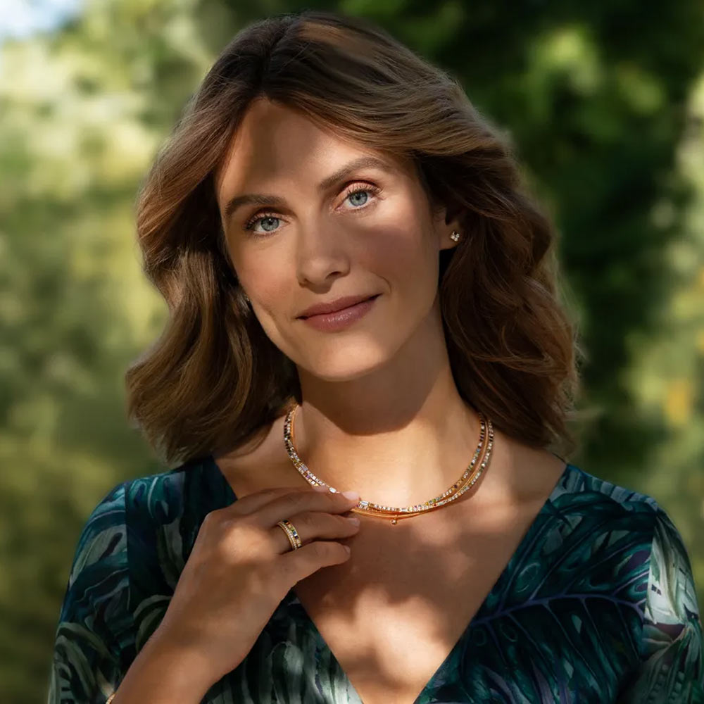 Jeden Tag bewegen wir uns in unterschiedlichen Rollen: im Beruf, in der Familie und in dem, was wir lieben. Um all das zu leben, braucht es Energie. Und Energie braucht eine Quelle, aus der sie entsteht. Das neue Collier POWER IN COLOUR eines der neuen Power-Colliers. Es ist ein Begleiter, der Kraft verleiht, Energie schenkt und an die eigene Stärke erinnert. Ein Symbol einer persönlichen Superpower, die jeden Tag neu gewählt werden kann. Leicht, jung und frisch trägt es sich wie selbstverständlich. Das besondere Highlight des edlen Colliers ist seine Wandelbarkeit: Der feine Baguette-Brillantstrang kann mühelos ein- und ausgehängt werden, wodurch sich das Collier im Handumdrehen verwandelt. Für jeden Tag oder als strahlendes Statement für die ganz besonderen Momente. Sonne, Licht und Farben bedeuten Lebensfreude! Sie machen gute Laune und schenken neue Energie. Zum ersten Mal sind alle Kalt-Emaillewürfel vollständig bombiert emailliert. Dadurch leuchten sie noch intensiver und sind nun auch fühlbar – wie kleine Kunstwerke, die durch einen feinen Linseneffekt ihre ganze Tiefe und die filigranen Gravuren darunter offenbaren. Die vierte Generation der Kordel Pures Glück verbindet schlichte Eleganz mit außergewöhnlicher Handwerkskunst; ein eng gewickelter Golddraht, durch einen quadratischen Ziehstein gezogen, legt sich mühelos und geschmeidig um den Hals und eröffnet eine neue Facette der Wellendorff-Welt. Das kleine rote Herz, dreidimensional bombiert und bewusst so gefertigt, dass es nicht nur sichtbar, sondern auch fühlbar ist, macht den Unterschied.