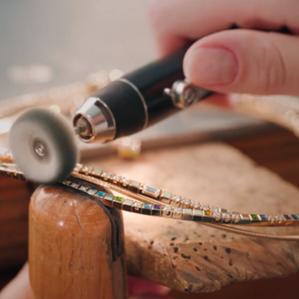 Wir fertigen im eigenen Atelier vor Ort. Alle Arbeiten vom Herstellen der Goldlegierungen über die Anfertigung, dem Fassen der Edelsteine bis hin zur finalen Polissage finden im Atelier Stoess statt. Damit garantieren wir die erstklassige Qualität unserer Schmuckstücke. Sie haben jederzeit die Möglichkeit während der Arbeit Ihres Schmuckstücks den Goldschmieden und Juwelenfassern über die Schulter zu schauen.