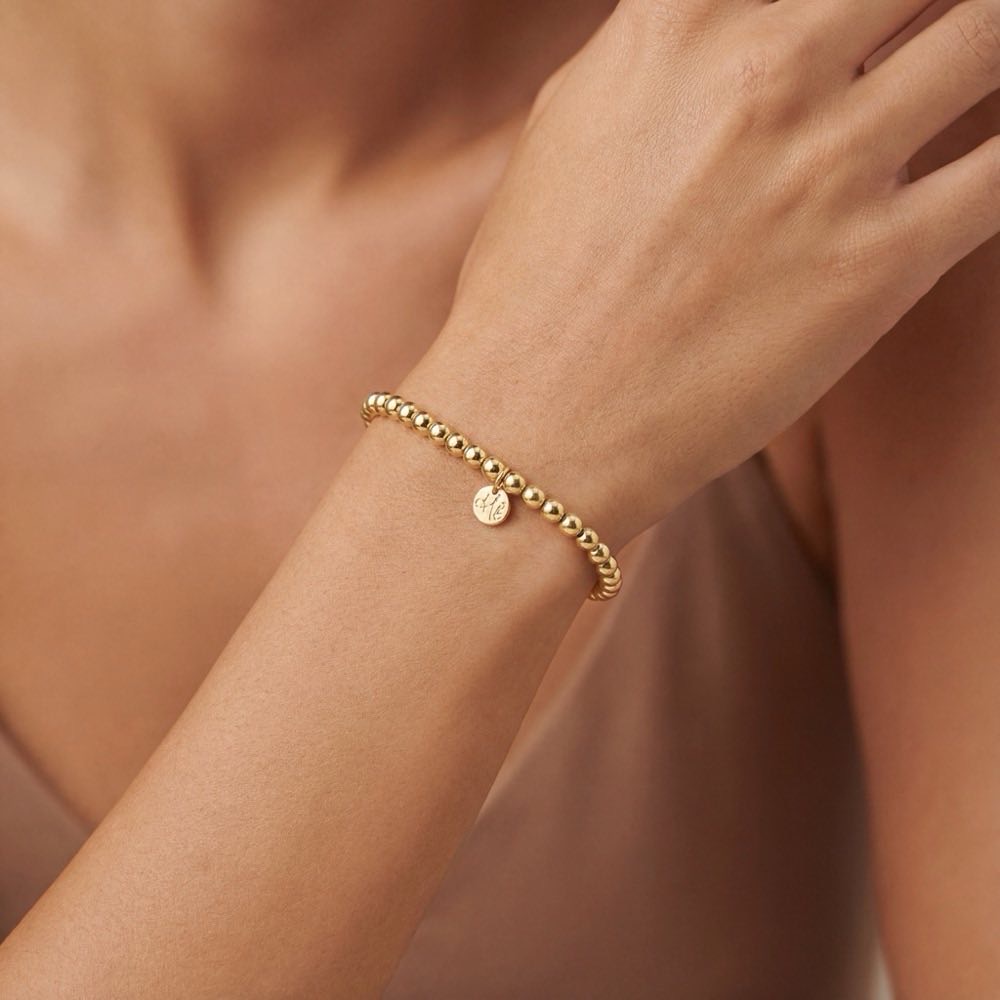 Sportlich und ganz unkompliziert wirkt dieses zeitlose Armband, stilbewusst gefertigt aus zart aneinandergereihten Kugeln in edlem und warm glänzendem Gelbgold 750/-. Es ist verschlusslos und streift sich durch seine Stretchbarkeit mühelos über das Handgelenk. Très chic!