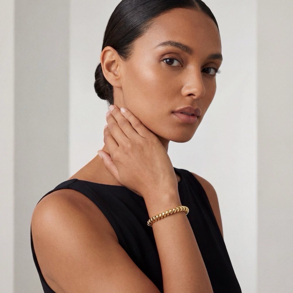 Casual und lässig im Stil, hochwertig und massiv verarbeitet: Armband aus Gelbgold 750/-, bestehend aus einer Gliederkette und darauf beweglichen Ronden.