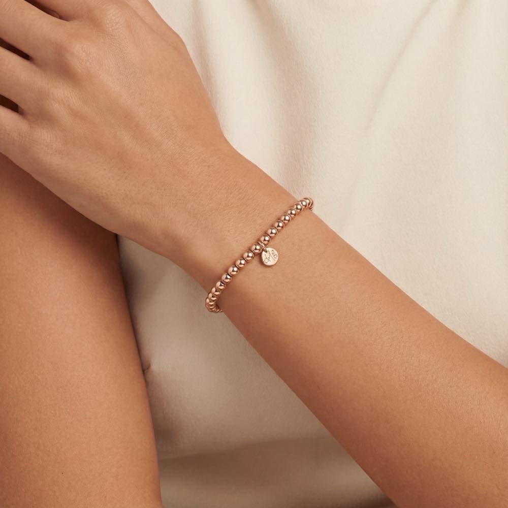Sportlich und ganz unkompliziert wirkt dieses zeitlose Armband, stilbewusst gefertigt aus warm glänzenden, zart aneinandergereihten Kugeln in edlem Roségold 750/-.
