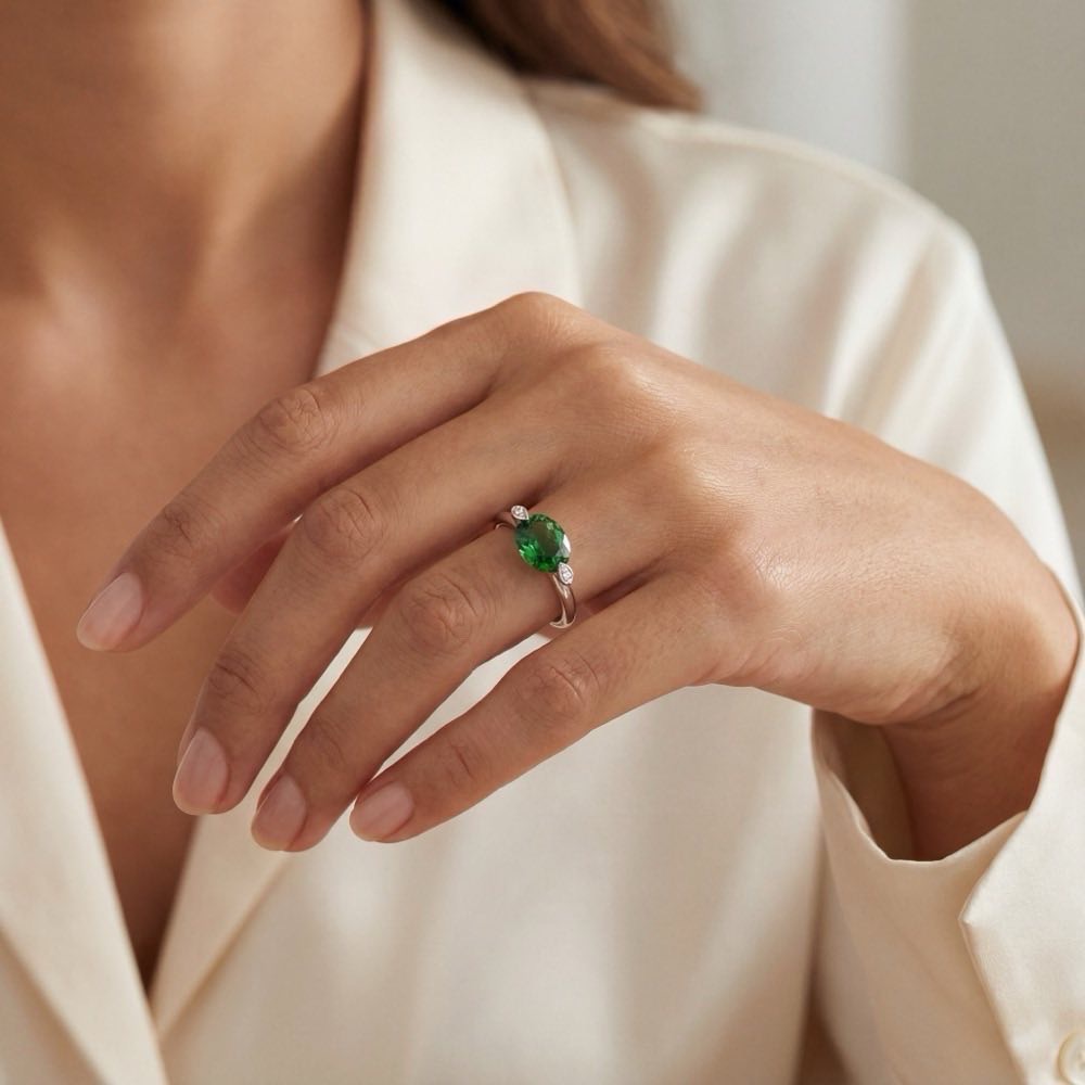 Schön schlicht und bezaubernd schön: Das ist Raindrops. Ein leuchtender Farbedelstein im Zentrum und zwei seitliche, tropfenförmige Einfassungen bilden ein magisches Trio. Die Farbe und das Funkeln des Edelsteins kommen durch seinen Oval-Schliff besonders schön zur Geltung.