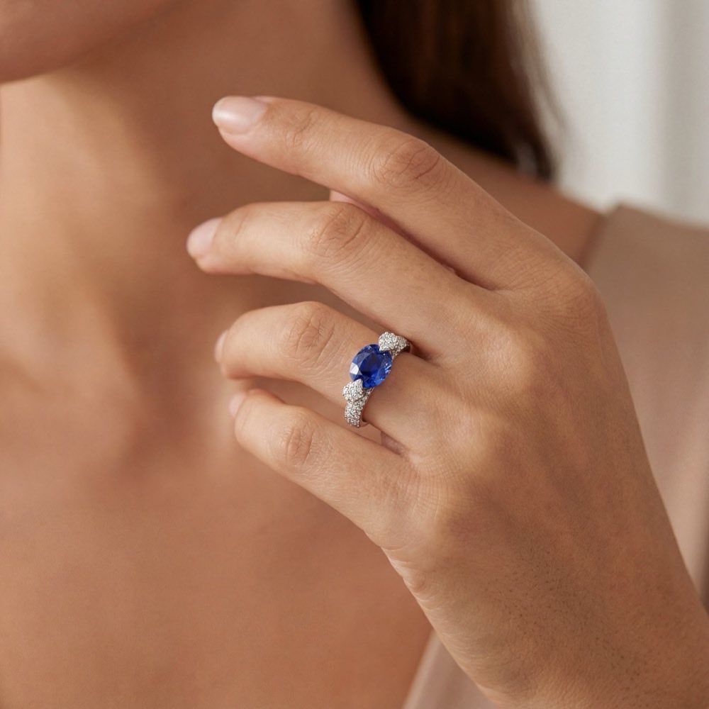 Schön schlicht und bezaubernd schön: Das ist Raindrops. Ein leuchtender Farbedelstein im Zentrum und zwei seitliche, tropfenförmige Einfassungen bilden ein magisches Trio. Die Farbe und das Funkeln des Edelsteins kommen durch seinen Oval-Schliff besonders schön zur Geltung.