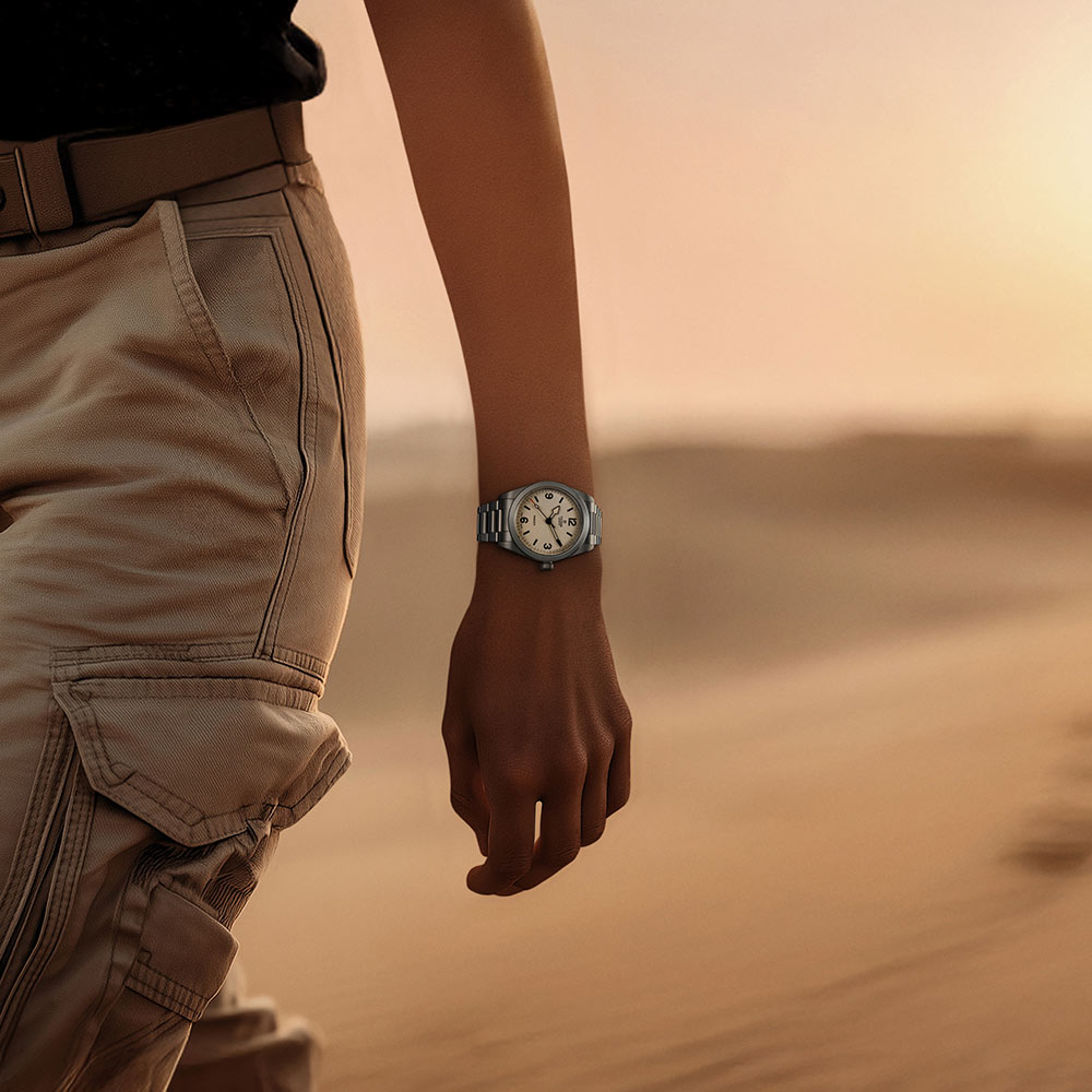 Mit einem vollständig satiniertem Edelstahlgehäuse von 36 mm, dem Manufakturwerk Kaliber MT5400 und einem matten Zifferblatt in „Dune White“, lässt dieses Modell der Ranger den Geist der Expeditionsuhr fortbestehen. Das Zifferblatt ist eine subtile Hommage an die Partnerschaft von TUDOR mit dem härtesten Autorennen der Welt. In der menschenleeren Wüste, wo die Rallye Dakar stattfindet, gibt es nichts als extreme Hitze, Felsen und hoch aufragende Sanddünen. Dies ist genau die Art von Umgebung, für die die Ranger geschaffen wurde.