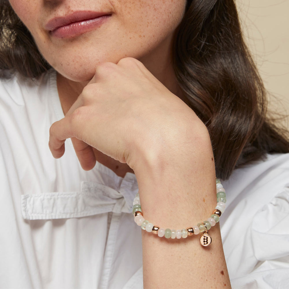 Armband "Reflex" überzeugt mit sieben goldenen Kugeln und einer hochwertigen Auswahl an edlen Edelsteinen. Dank seiner dehnbaren Konstruktion lässt es sich mühelos an- und ablegen – ganz ohne Verschluss. Ob alleine oder in Kombination getragen, es ist stets ein wahrer Blickfang!