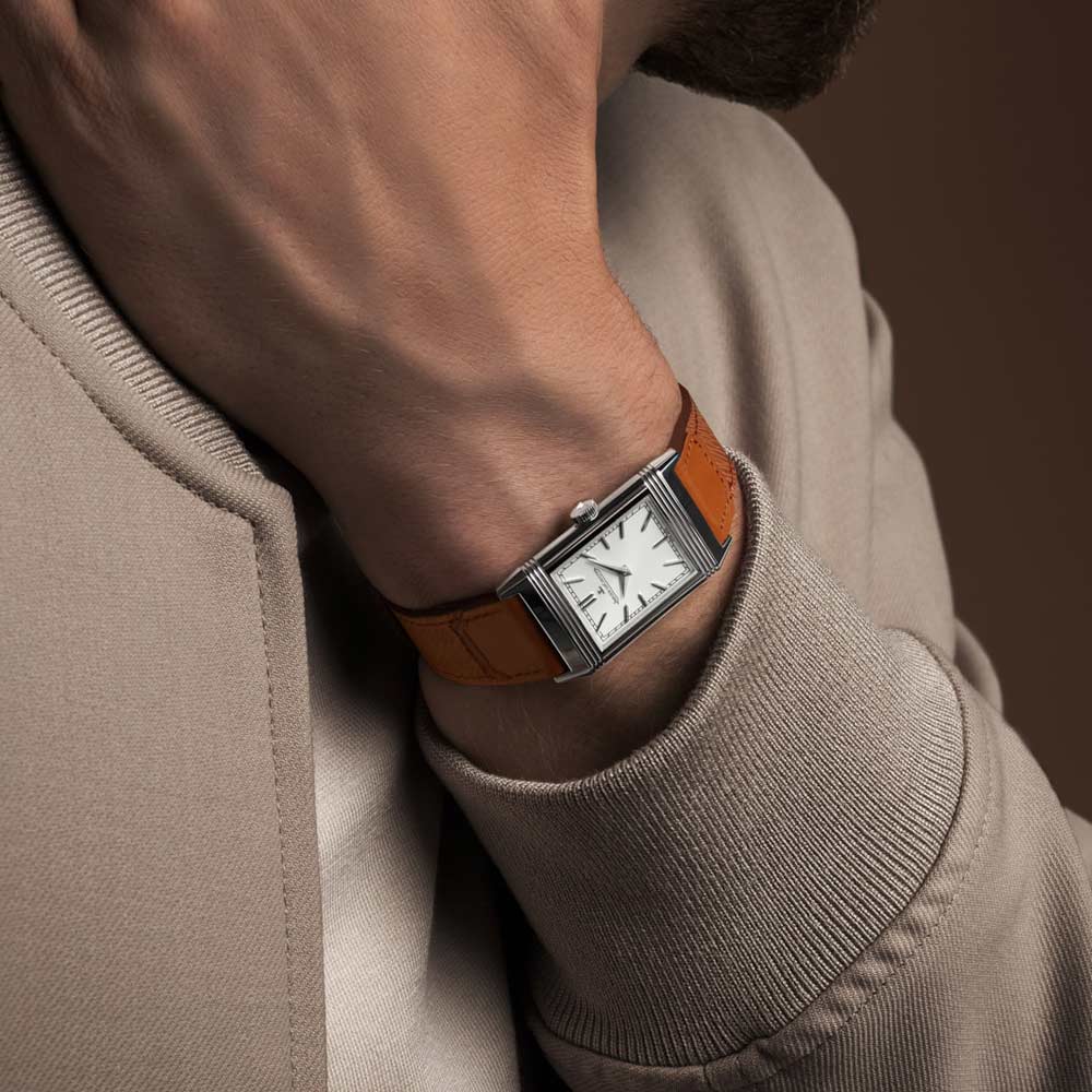 Die Reverso Tribute Monoface ist eine Hommage an die ersten Modelle von 1931 – in Ästhetik und Proportionen. Das schlanke Gehäuse mit den Maßen 40,1 x 24,4 mm garantiert höchsten Tragekomfort im Alltag. Unter dem silbergrauen Zifferblatt mit Opalin-Veredelung verbirgt sich das charakteristische Wendegehäuse, das individuell gestaltet werden kann. Im Inneren sorgt das Jaeger-LeCoultre Kaliber 822 mit Handaufzug für Präzision und bietet eine Gangreserve von 42 Stunden. Das austauschbare Armband mit Faltschließe, entworfen von Fagliano, kombiniert zwei Oberflächen: eine Lasche aus glattem Kalbsleder sowie kurze und lange Riemen aus genarbtem Kalbsleder im Saffiano-Stil. Ein zeitloses Modell, das an jedem Handgelenk perfekt sitzt.