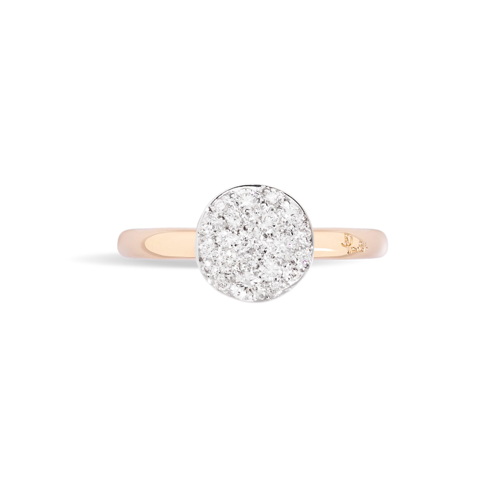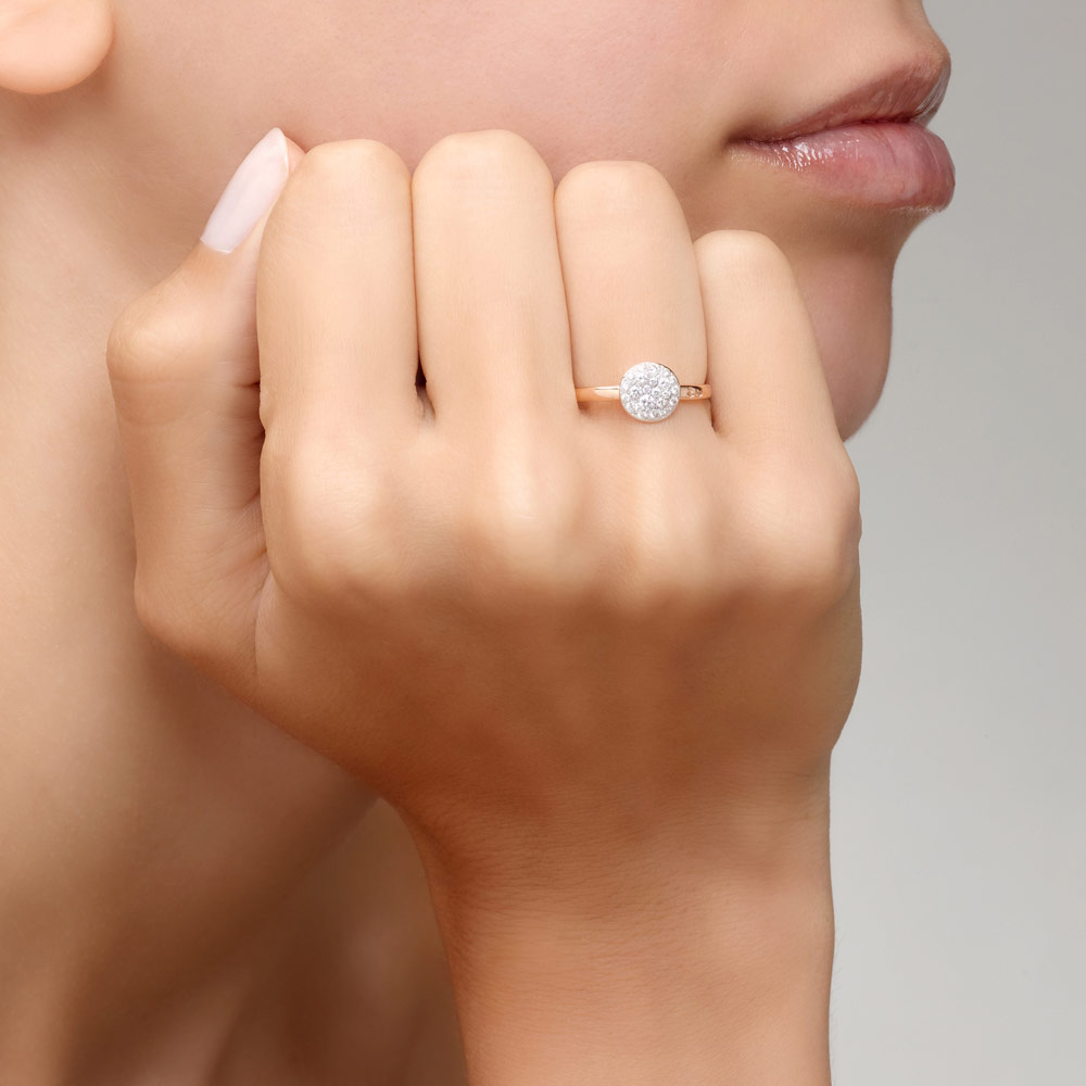 Zeitloser Ring mit weißen Diamanten in der Variante "Small" im Pavée-Setting. Die samtweich geschwungene Oberfläche macht diesen Ring zu einem ganz besonderen Blickfang. Gefertigt aus 18 Karat Roségold.