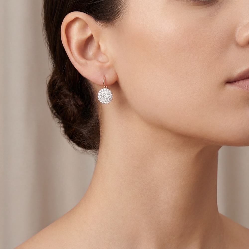 Charmante Ohrringe mit weißen Diamanten im Pavée-Setting. Die samtweich geschwungene Oberfläche macht die Ohrringe zu einem ganz besonderen Blickfang. Gefertigt aus 18 Karat Roségold.