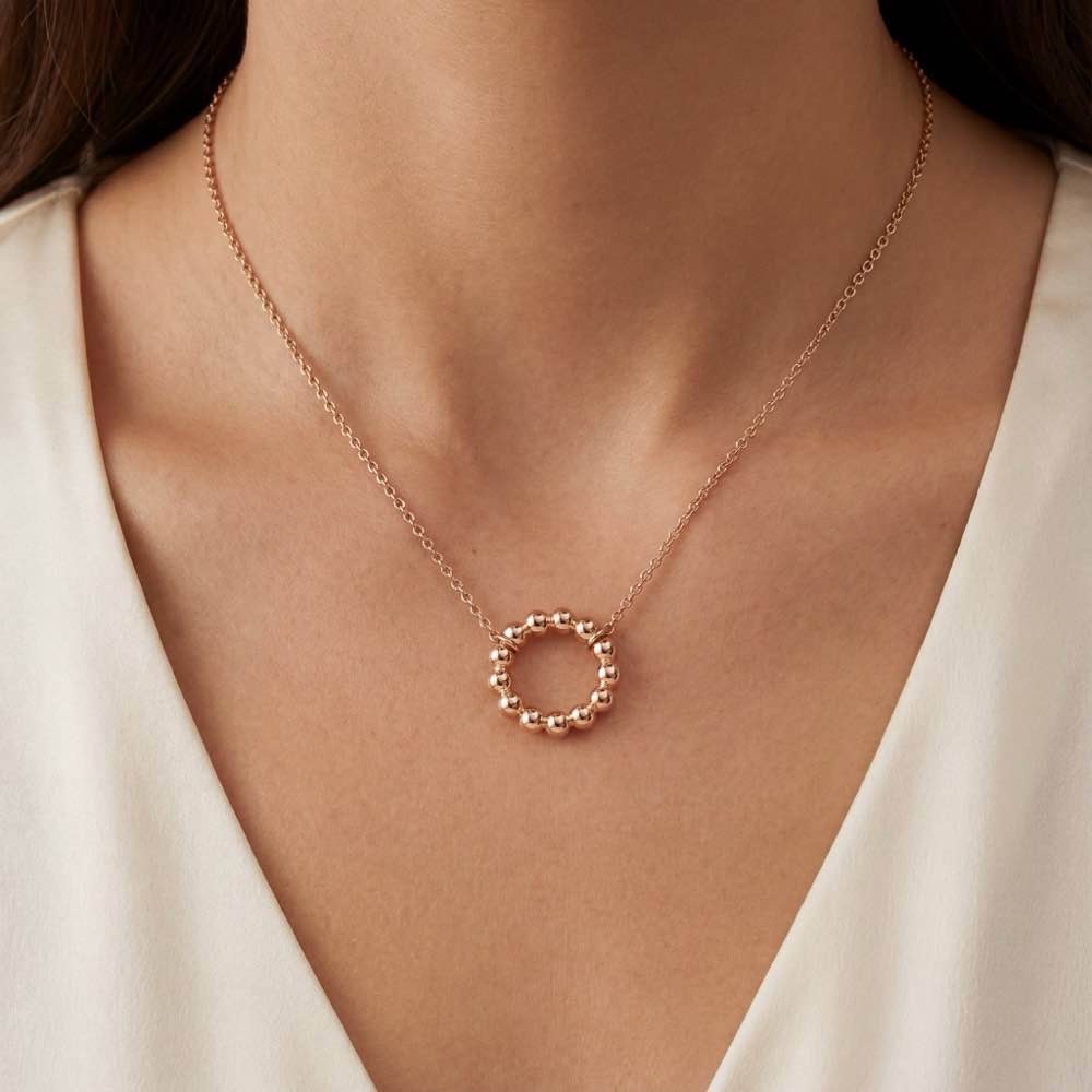 Stilvoller und lässiger Halsschmuck aus einem Kranz aneinandergereihter Kugeln, die massiv und in detailreicher Handarbeit aus hochwertigem Roségold 750/- gefertigt sind. Ein toller Begleiter für jeden Tag! In drei Durchmessern S, M und L erhältlich.