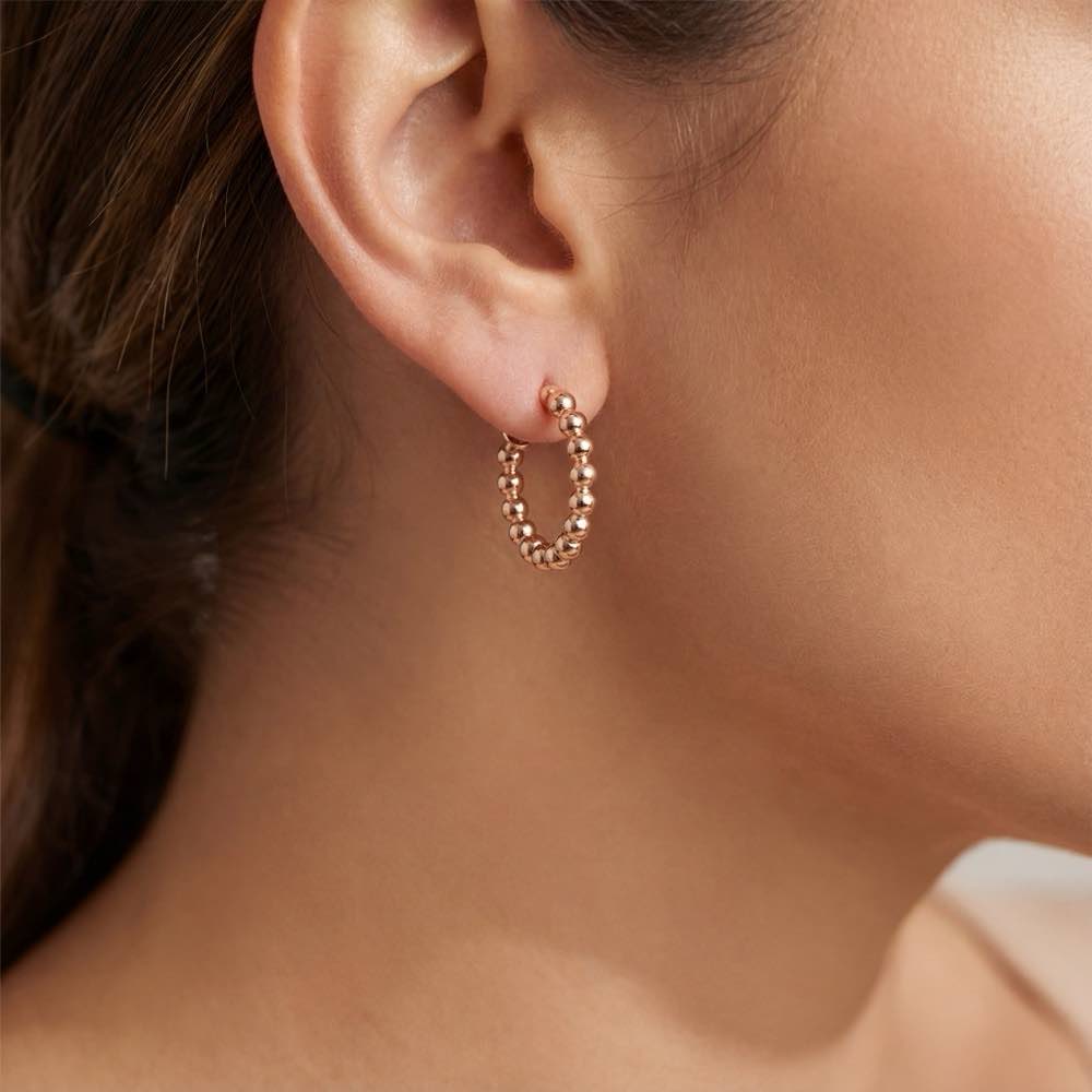 Zeitlose und stilvolle Ohrstecker für jeden Tag. Die aneinandergereihten, massiven Goldkugeln formen sich zu einer wunderschönen Creole, die sich jedem Ohr perfekt anschmiegt. In feiner Handarbeit aus Roségold 750/- gearbeitet.