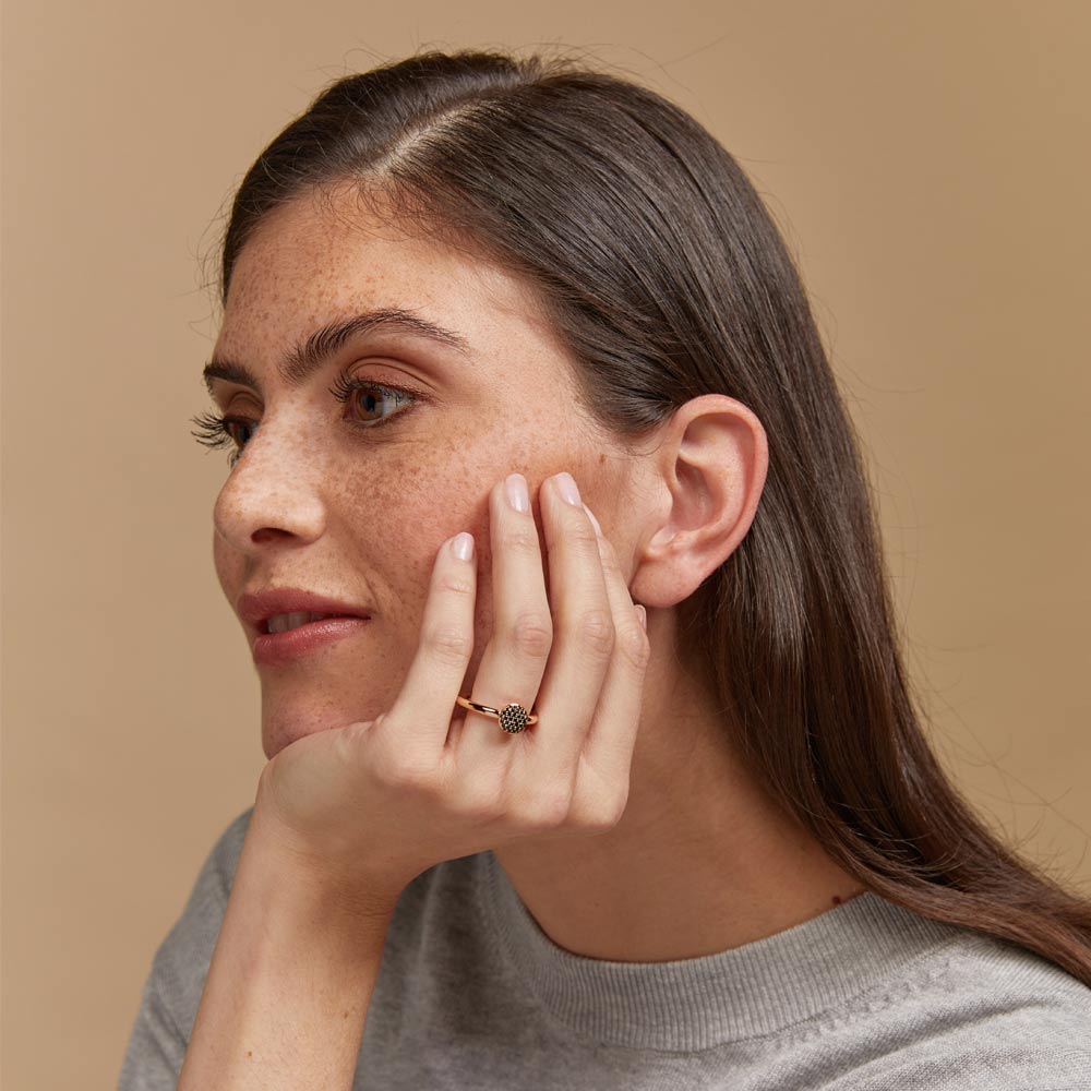 Ring Stardust aus der Kollektion City Garden mit schwarzen Saphiren. Gefertigt aus Roségold 18 Karat. Der Stardust Ring ist ideal für Kombis. Besetzt mit schwarzen Saphiren ist er besonders lässig!