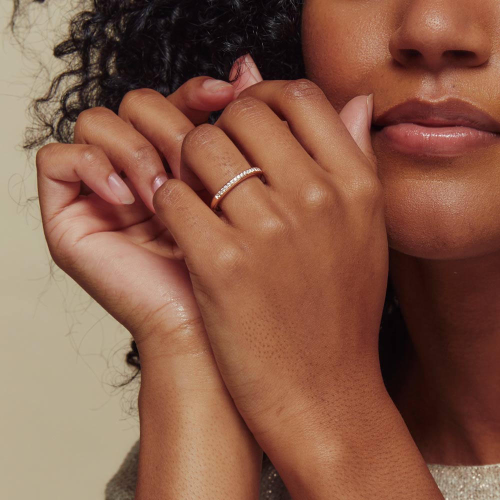 Stax-Ring mit weißen Diamanten aus 18-karätigem Roségold - der perfekte Ansteckring und eine ideale Ergänzung für jede anspruchsvolle Schmucksammlung.