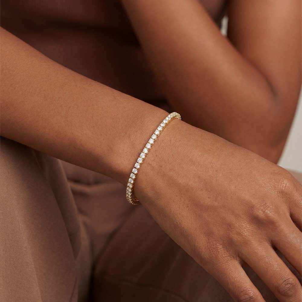 Elastisches Zugarmband ohne Verschluss mit fein weißen Diamanten. Mit seiner exzellenten Verarbeitung und technisch ausgereift, ist es spielend leicht und sicher in der Handhabung. Aus warmen Gelbgold  750/- gefertigt.