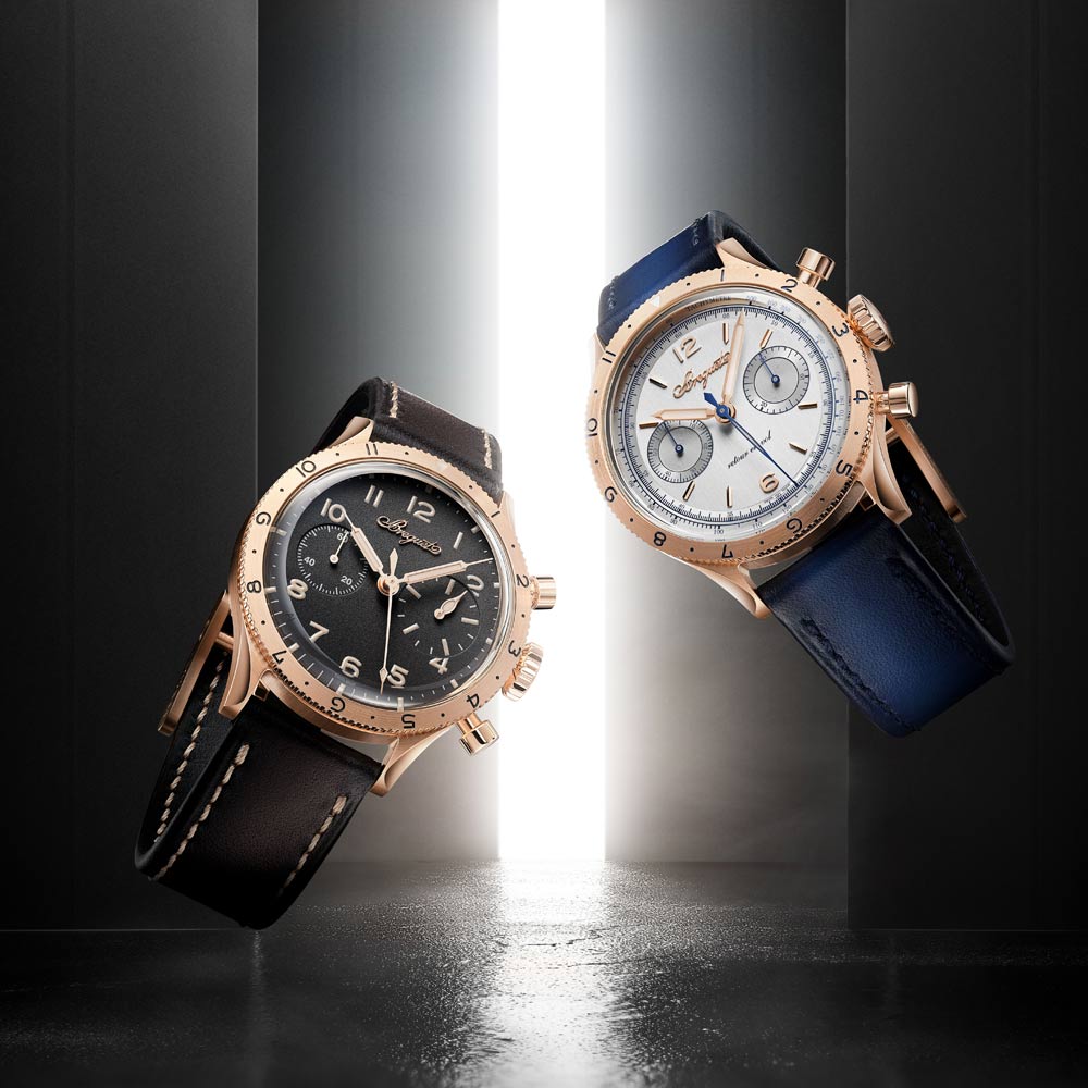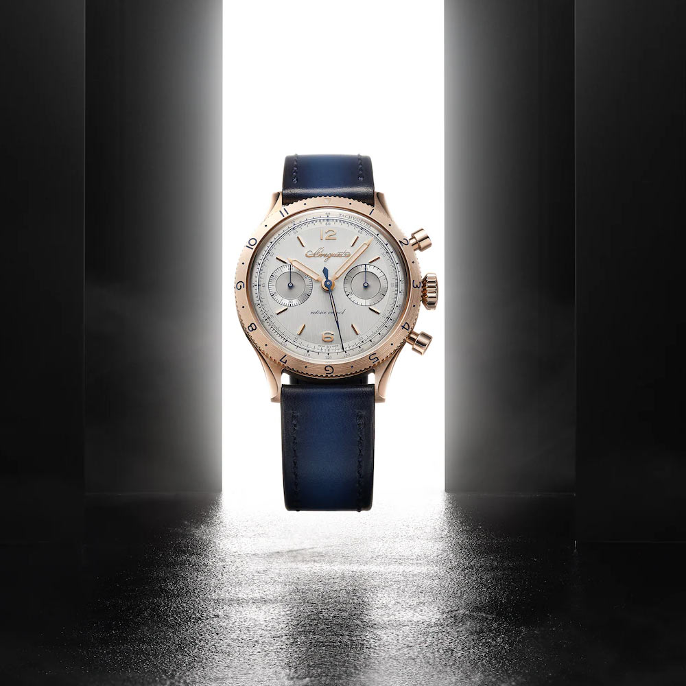 Ein Jubiläumsstück mit Charakter: Die Type XX 2075 vereint ein Gehäuse aus 18- karätigem Breguet-Gold mit satiniertem Mittelteil und einem Zifferblatt aus 925er Silber samt goldenen Ziffern und Zeigern mit beigefarbener Leuchtmasse. Im Inneren arbeitet das Kaliber 7278 mit Handaufzug, Flyback-Funktion, 60 Stunden Gangreserve. Kalbslederarmband mit Goldschließe runden das edle Gesamtbild ab. Limitiert auf 250 Stück.