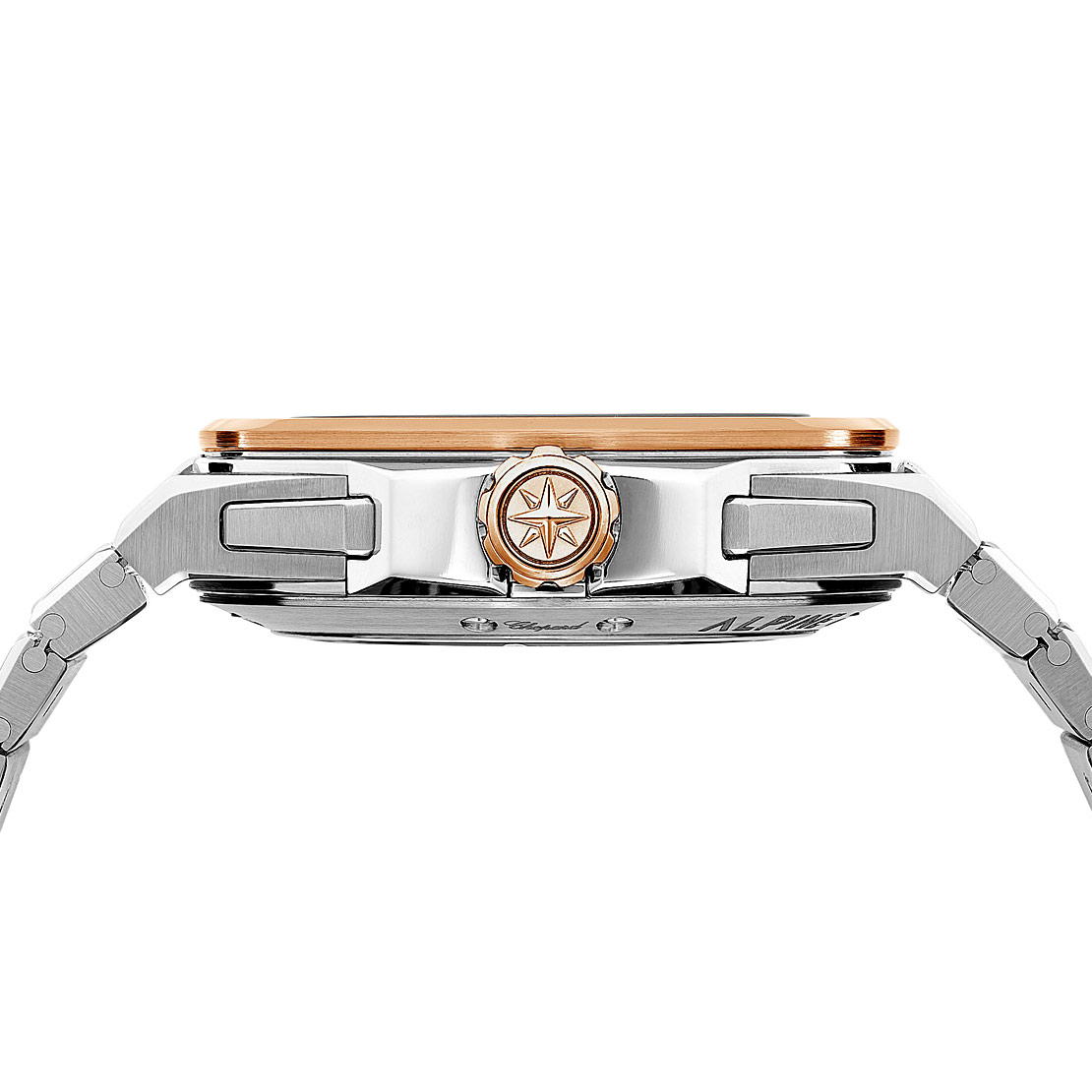 Die bisher in Lucent Steel oder bicolor angebotene Alpine Eagle mit 41 mm Gehäusedurchmesser wird durch zwei ganz neue Modelle erweitert, deren Gehäuse und Armbänder komplett in 18 Karat Roségold gefertigt sind. Die erste Ausführung sticht durch ihr Aletsch-blaues strukturiertes Zifferblatt hervor, das an den größten Gletscher der Schweizer Alpen erinnert, während die zweite, mit einem Bernina-grauen Zifferblatt, das die gleichnamige Alpenkette zwischen Schweiz und Italien evoziert, von Diamanten auf der Lünette gekrönt ist.