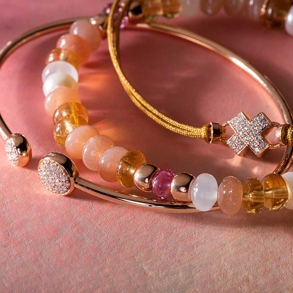 Die neue Frühjahr/Sommer-Kollektion Daybreak sprüht vor Lebensfreude! Rauchquarz und Mondstein spiegeln die letzte Dunkelheit der Nacht, während Citrin und rosa Turmalin den Himmel zum Leuchten bringen. Der Rutilquarz mit seinen goldenen Sonnenstrahlen läutet den neuen Tag ein. Vertraute Stücke erhalten neuen Schub von lebendigen Farben und Neuankömmlinge bringen Frische in die neue Kollektion. Carpe diem!