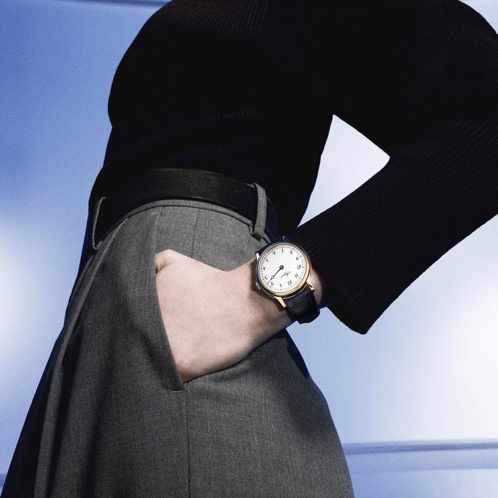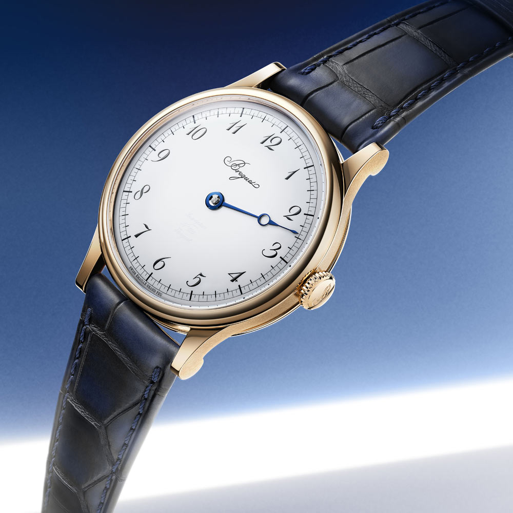 Zum 250-jährigen Jubiläum interpretiert Breguet die legendäre Einzeigeruhr neu – ein Modell, das Ende des 18. Jahrhunderts mit seiner klaren Architektur und dem innovativen Subskriptionskonzept Geschichte schrieb. Die Souscription 2025 präsentiert sich mit einem strahlend weißen Grand-Feu-Emaillezifferblatt, arabischen Breguet-Ziffern und dem charakteristischen Einzelzeiger. Das 40-mm-Gehäuse aus 18 Karat Breguet-Gold mit Saphirglasboden offenbart das fein finissierte Handaufzugswerk. Ergänzt wird die Uhr durch ein elegantes Alligatorlederarmband. Dieses bis 3 bar wasserdichte Jubiläumsmodell ist die perfekte Symbiose aus Breguets visionärer Idee und meisterhafter Uhrmacherkunst.