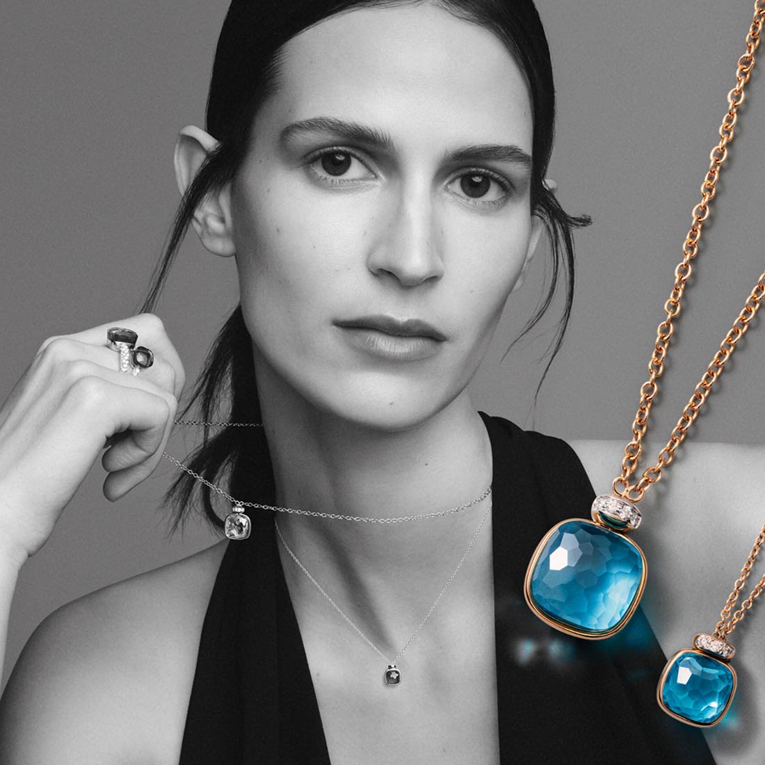 Die Nudo-Kollektion von Pomellato verführt mit einer exklusiven Auswahl an strahlend bunten Edelsteinen. Die „nackten” Steine, die ohne Fassung auskommen, verkörpern den Geist Mailands. Der Schliff und die Verarbeitung betonen die Einzigartigkeit jedes einzelnen Steins, während das Licht auf den 57 Facetten tanzt und Freiheit symbolisiert. Ringe, Armbänder und Halsketten dieser Kollektion eröffnen unzählige Kombinationsmöglichkeiten und laden dazu ein, die eigene Individualität zu feiern.